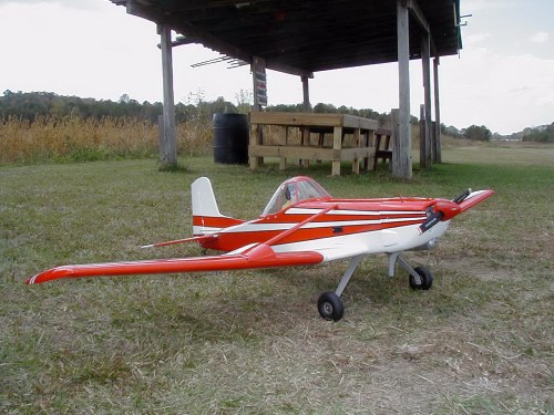 This is Jim Woodard and his new Long John 120 with a Ryobi 31 cc engine. I got to see Jim's plane fly at the Munford field on Oct. 20. It was a beautiful day to fly and Jim's plane had several good flights. The Ryobi 31 seems to have plenty of power for this plane and Jim put it through the paces. Gas engines really get good mileage and have little to clean up when you are through flying.