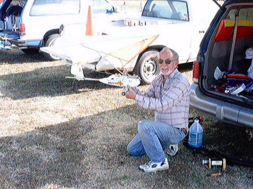 About 1:00 pm we started the fun fly events that included a spot landing, a timed event, and a bomb drop. We had eleven contestants to enter the events and Pat Thomas was the big winner along with Loren, Jerry and Ken. Everyone in the contest had lots of fun and even the spectators enjoyed watching. Cooper Crossley and Jack Holland did a great job running the contest. I am sad to say we did loose two planes during the day, Pat lost his giant profile and Neil lost his G-Trick. By 4:00 pm most of the members had called it a day and was on their way home. By and large it was a real success and I hope we can do it again next year.